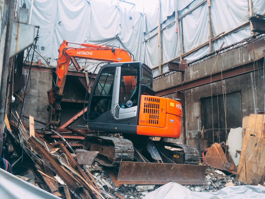 • 手壊し(てこわし)作業の併用: 重機がどうしても届かない箇所や、隣接する建物と数センチしか離れていない場合は、職人が手作業で丁寧に解体します。